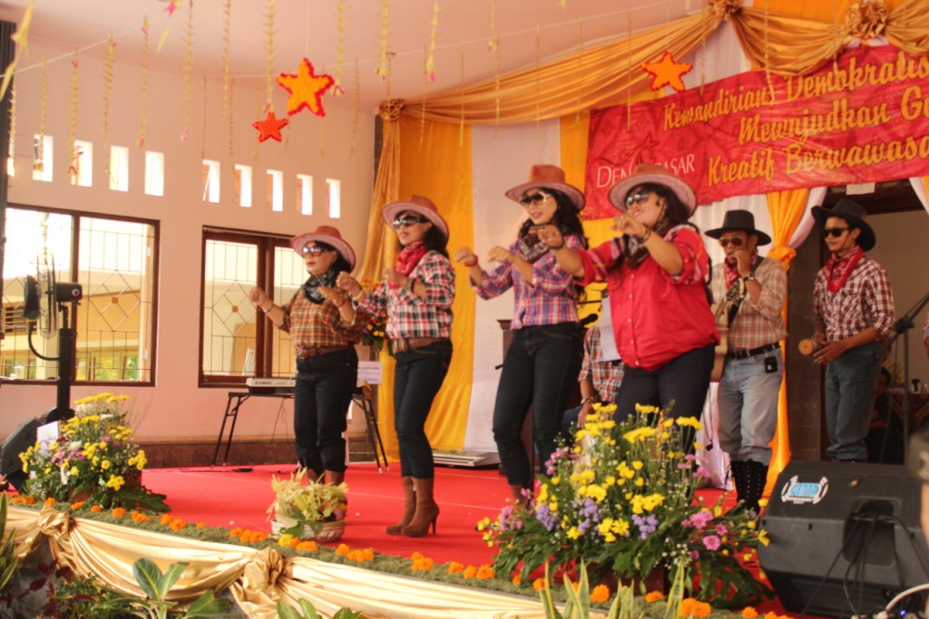 menyambut HUT Dharma Wanita kota Denpasar. Kegiatan ini juga bertujuan untuk memperingati hari ibu yang yang jatuh pada tanggal 22 Desember nanti. Dari SMAN 4 Denpasar sendiri kreatifitas yang disuguhkan adalah penampilan grup vokal oleh guru-guru. Dengan mengenakan busana country, mereka yang biasanya terlihat formalpun menjadi sangat modis.